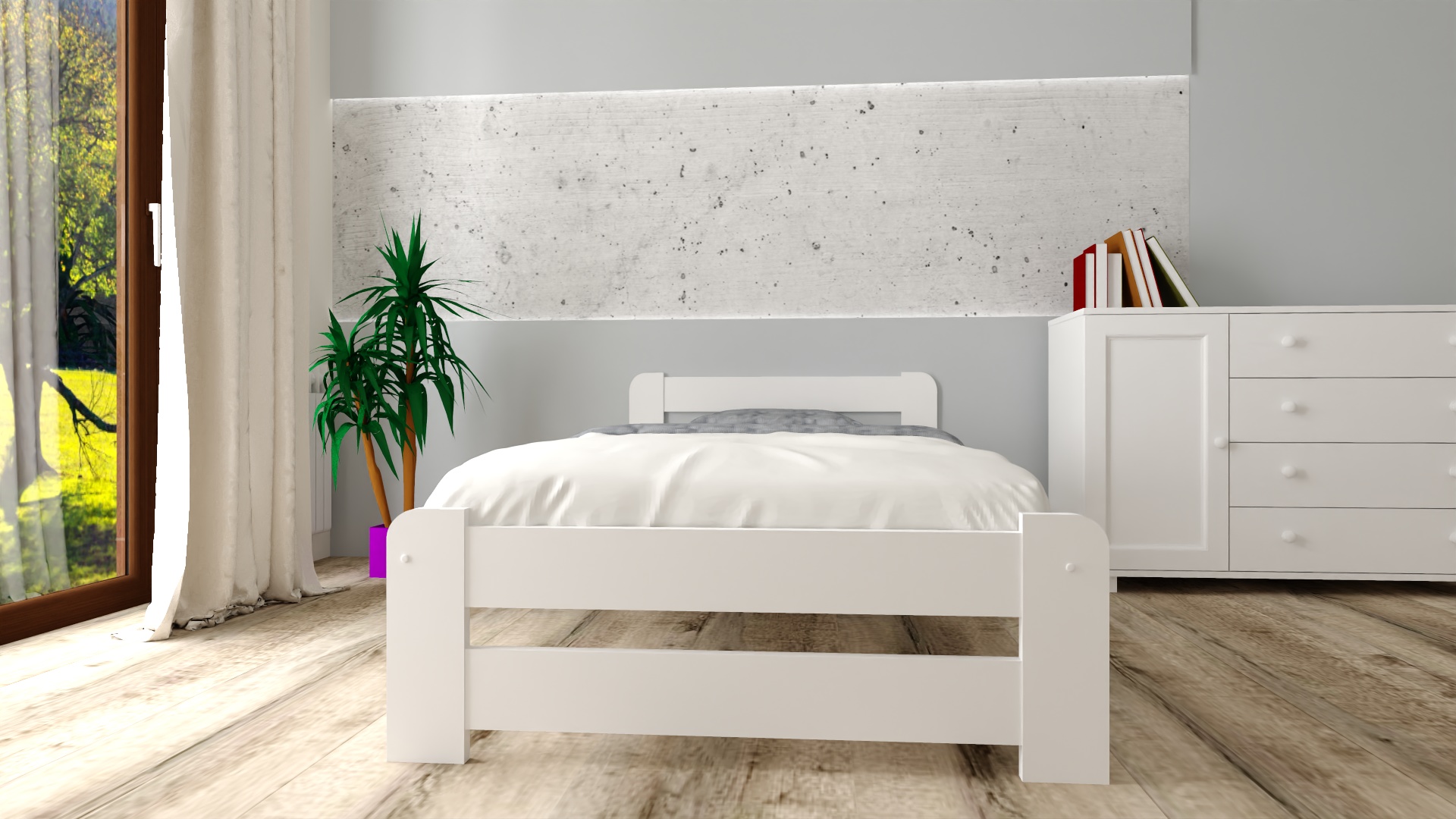Rama wykonana została z prawdziwego drewna i jest niezwykle odporna na obciążenie oraz uszkodzenia mechaniczne. Przemyślana i solidna konstrukcja łóżka zapewnia stabilność i bezpieczeństwo.