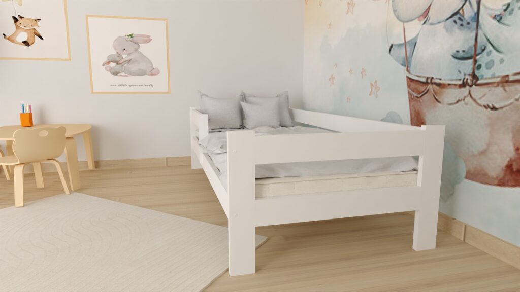 Łóżko ALA to doskonały wybór dla rodziców, którzy szukają połączenia bezpieczeństwa, trwałości i prostego, uniwersalnego designu. Wykonane z naturalnego drewna sosnowego, łóżko zachwyca prostą formą, solidnym wykonaniem i ciepłym, przyjaznym wyglądem. Jest trwałe, bezpieczne i przede wszystkim komfortowe. Krawędzie zostały starannie zaokrąglone, co minimalizuje ryzyko uderzeń, a barierka ochronna daje rodzicom spokój, że dziecko nie spadnie w nocy.