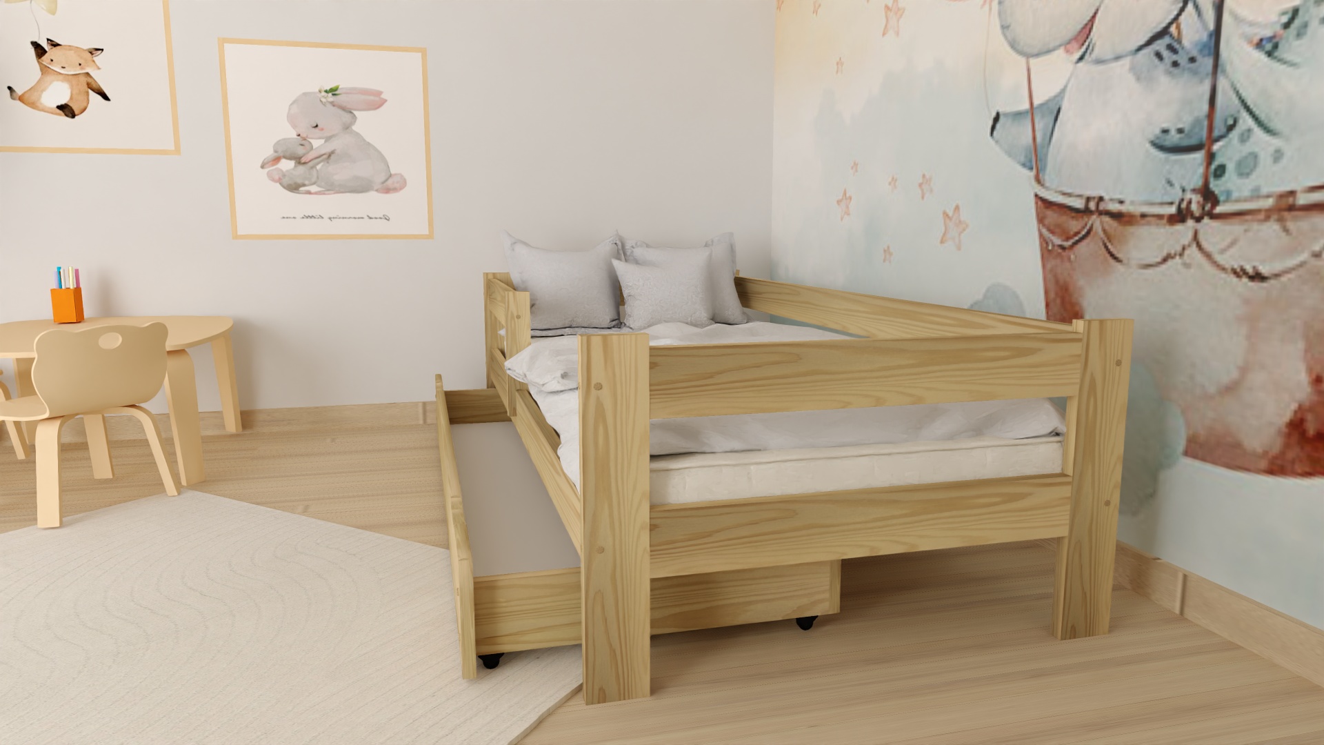 Eleganckie łóżko z naturalnego drewna dla Twojego dziecka