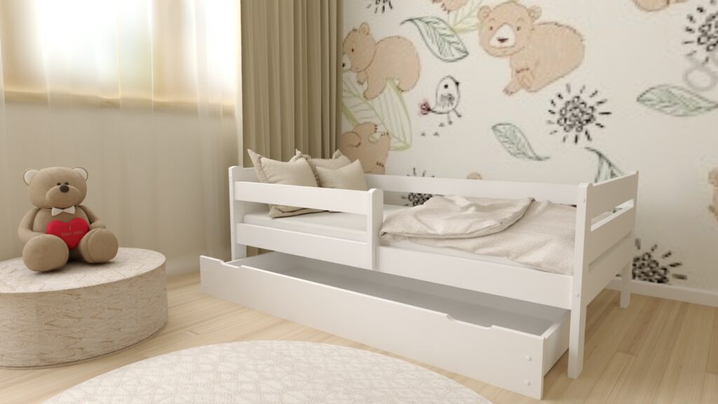 ŁÓŻKO DZIECIĘCE EDI 90×200 Białe z szufladą