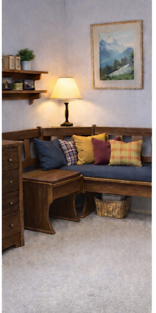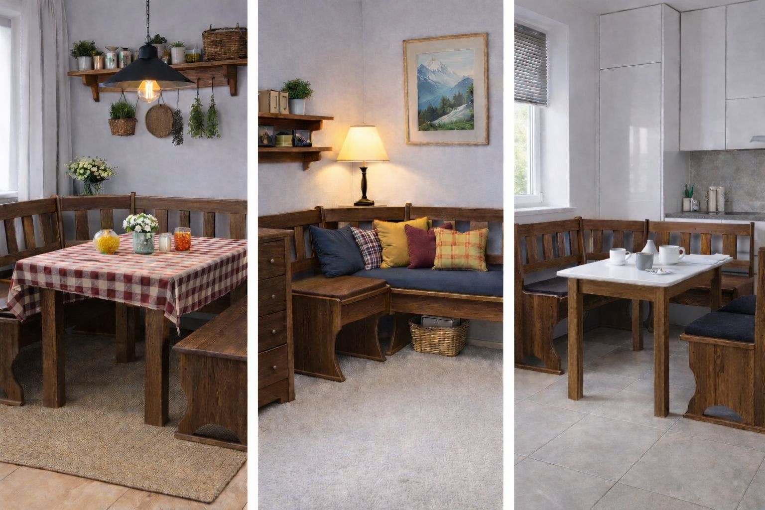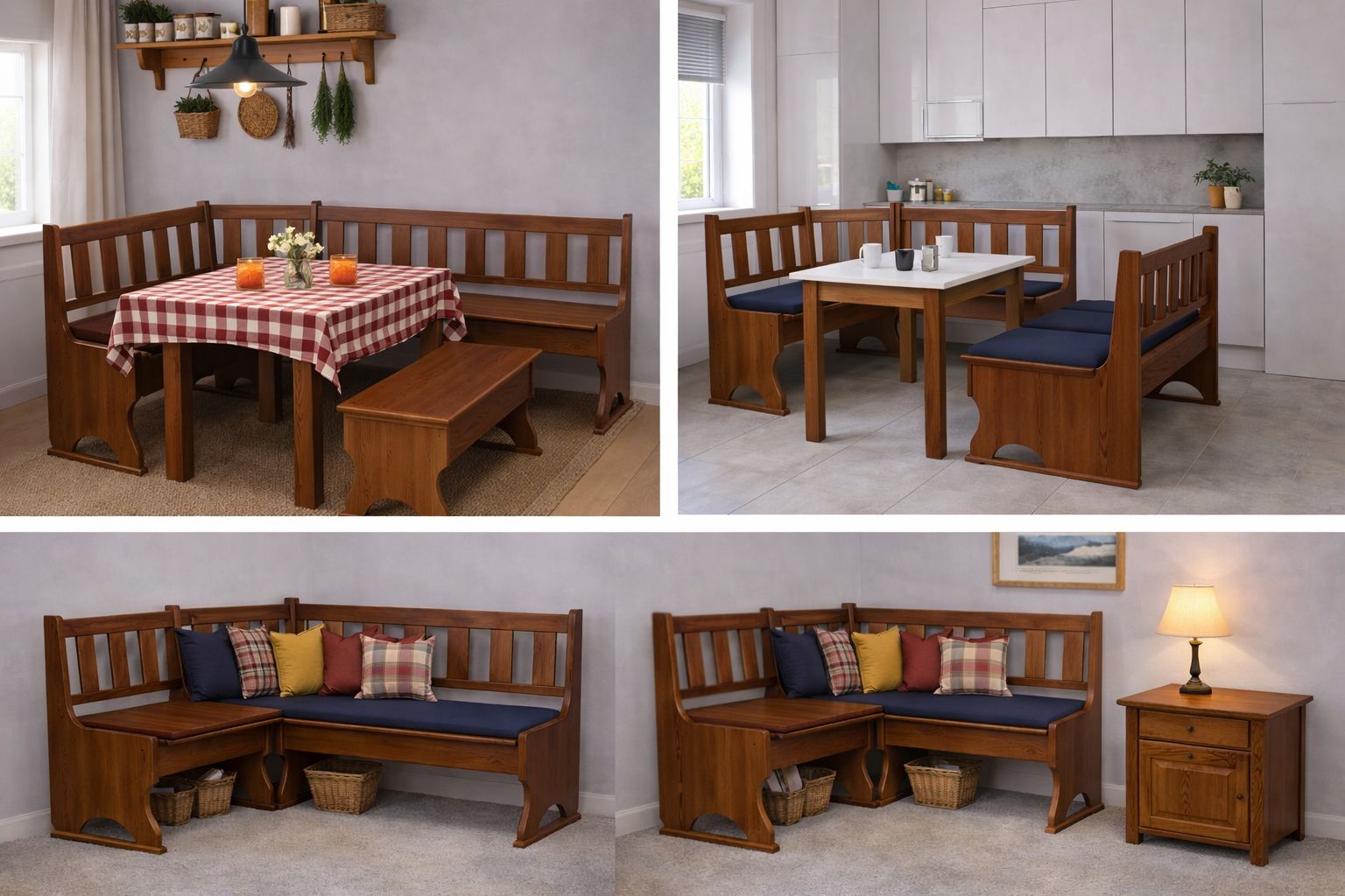 Narożnik drewniany sosnowy do kuchni, jadalni lite drewno Model S Orzech