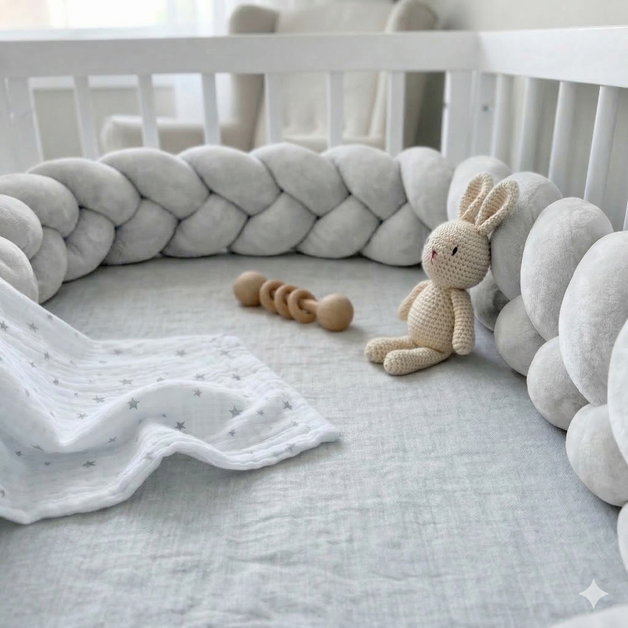 Ochraniacz do łóżeczka w formie plecionego warkocza to połączenie bezpieczeństwa, funkcjonalności i eleganckiego wyglądu.