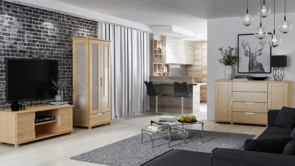 Poprawny wystrój ogniska domowego stanowi bardzo ważny element każdego mieszkania bądź domu rodzinnego. Jednym z centralnych pomieszczeń jakie można spotkać w domach jest pokój gościnny. Potrafi on bardzo dużo powiedzieć o charakterze gospodarza, jego zainteresowaniach czy pasjach. Dlatego też warto zadbać o tą przestrzeń z należytą starannością. Kolekcja mebli Legna wyciąga pomocną dłoń kreatorom wnętrz sprawiając, że pośród nich każdy czuje się jak u siebie. Sosnowe komody w jasnych i rozświetlających przestrzeń kolorach w których kryją się niezbędne drobiazgi czy też klasyczne stoliki pod telewizor sprawiają, że pokój od razu nabiera nowego blasku. Oryginalność każdego z elementów kolekcji Legna zapewnia oryginalny design na którego uwagę zwróci każda przebywająca w pokoju osoba. Nie sposób jest zapomnieć o solidnym materiale z którego powyższe meble są produkowane – silna, wyrazista i pachnąca sosna dopełnia całość stylu i elegancji.