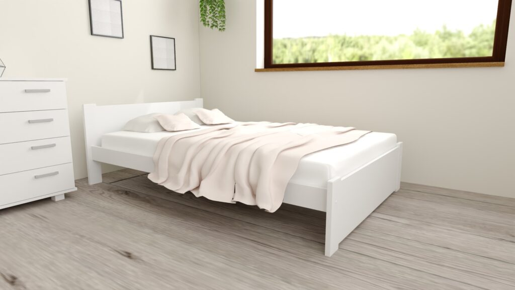 Łóżko D3 to nowoczesna ponadczasowa konstrukcja zaprojektowana zgodnie z panującymi trendami. Wykonane z solidnej płyty meblowej i osadzone na stabilnych, białych nogach doskonale komponuje się z jasnymi, minimalistycznymi wnętrzami. Czysta forma bez zbędnych ozdobników nadaje mu ponadczasowy wygląd, który łatwo dopasować do różnych aranżacji – od skandynawskich po nowoczesne.
