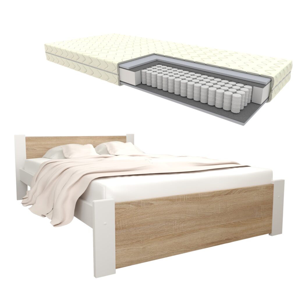 ZESTAW ŁÓŻKO D3 140×200 Dąb sonoma + materac kieszeniowy