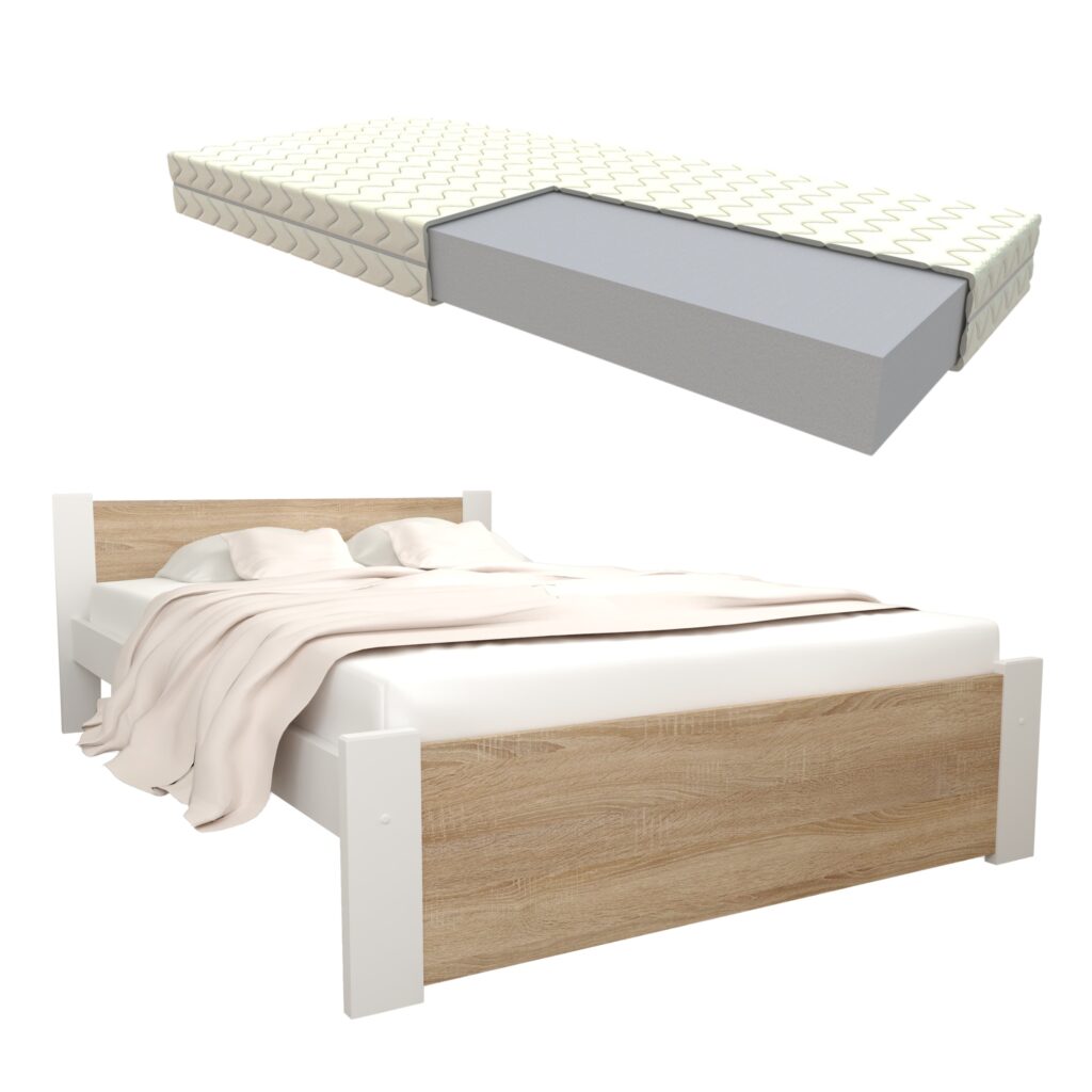 ZESTAW ŁÓŻKO D3 140×200 Dąb sonoma + materac piankowy