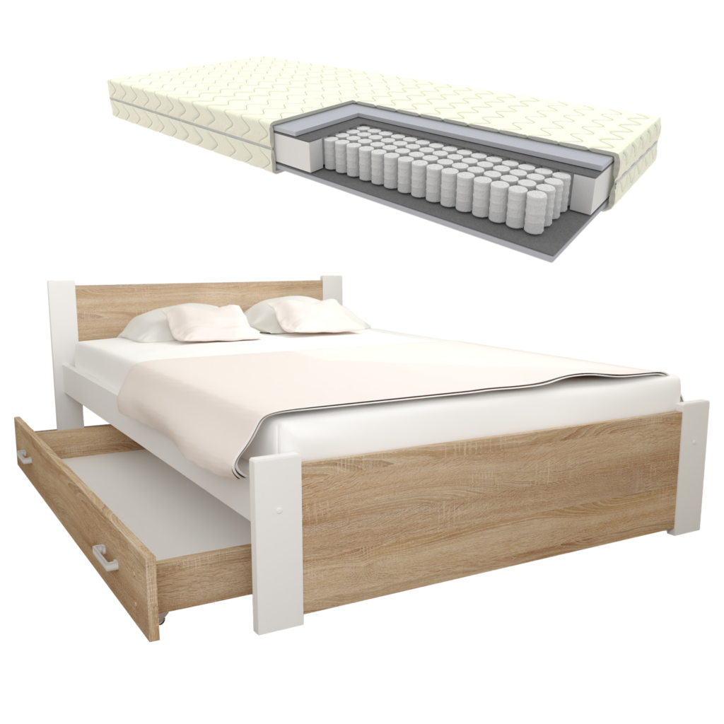 ZESTAW ŁÓŻKO D3 80×200 Dąb sonoma z szufladą DS i materacem kieszeniowym