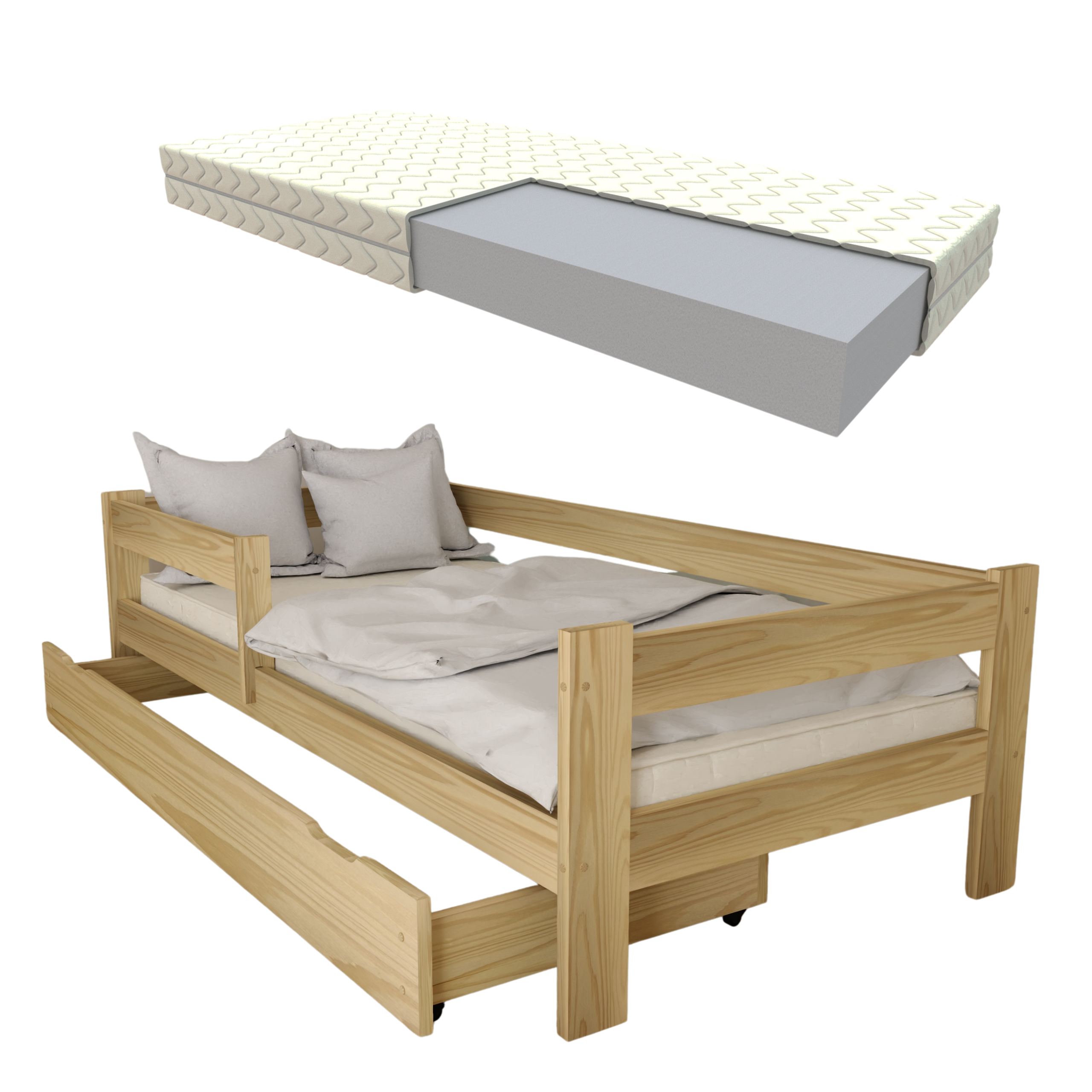 ZESTAW ŁÓŻKO DZIECIĘCE ALA 80×160 Sosna z szufladą i materacem piankowym