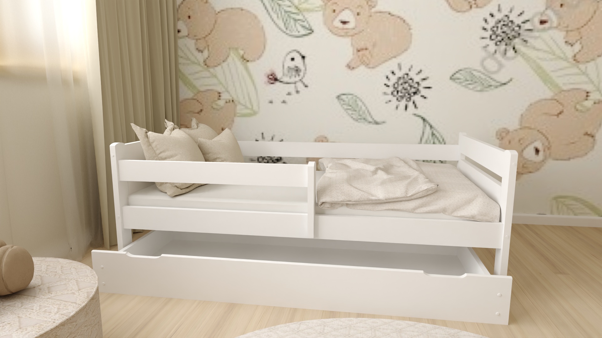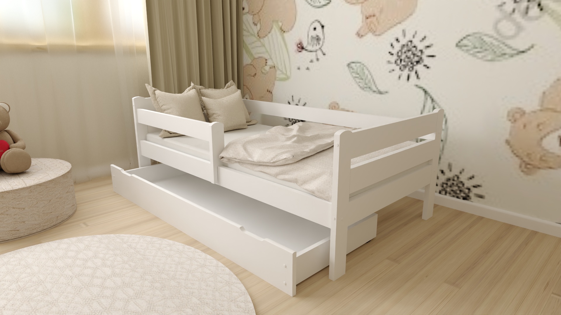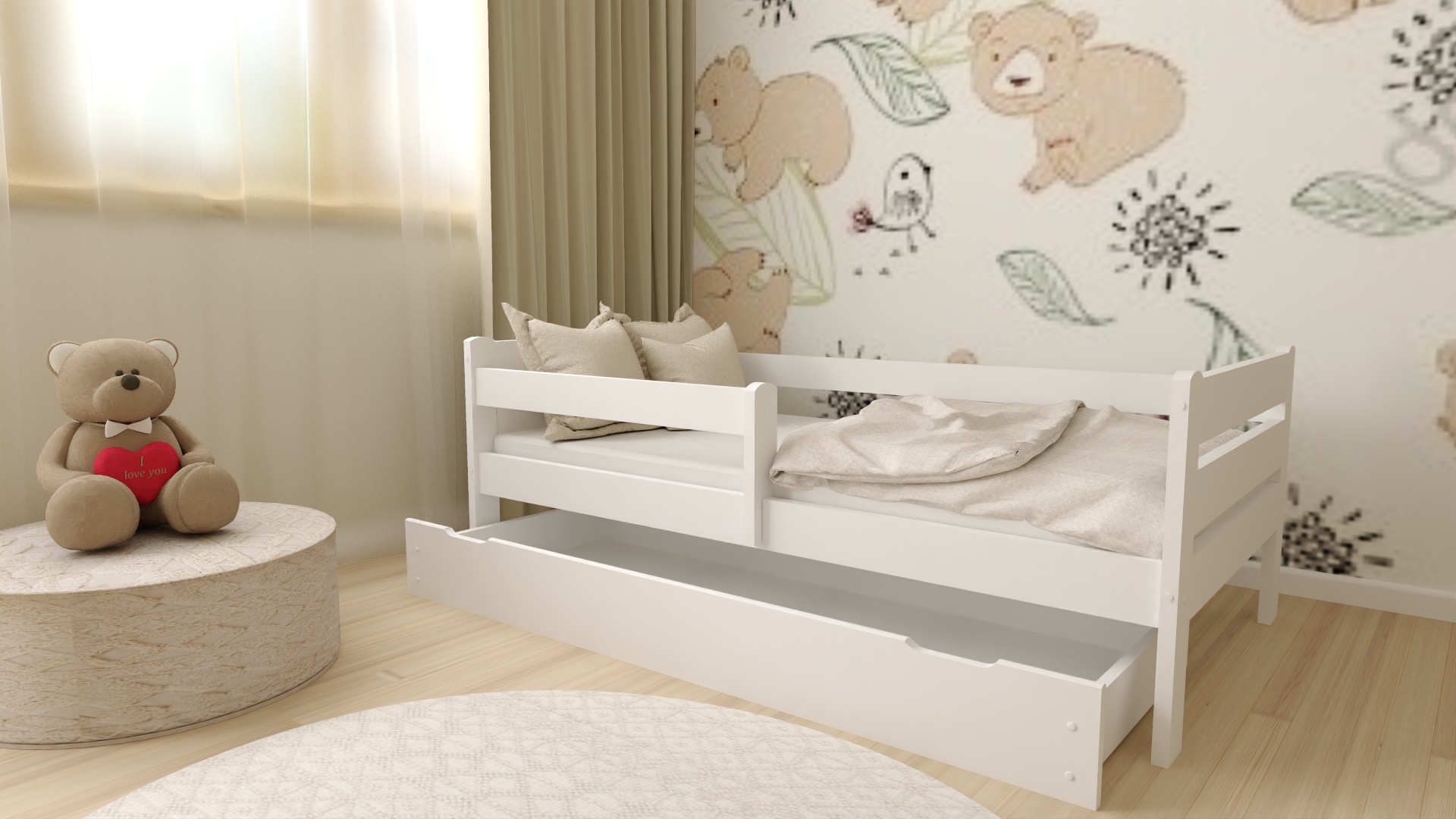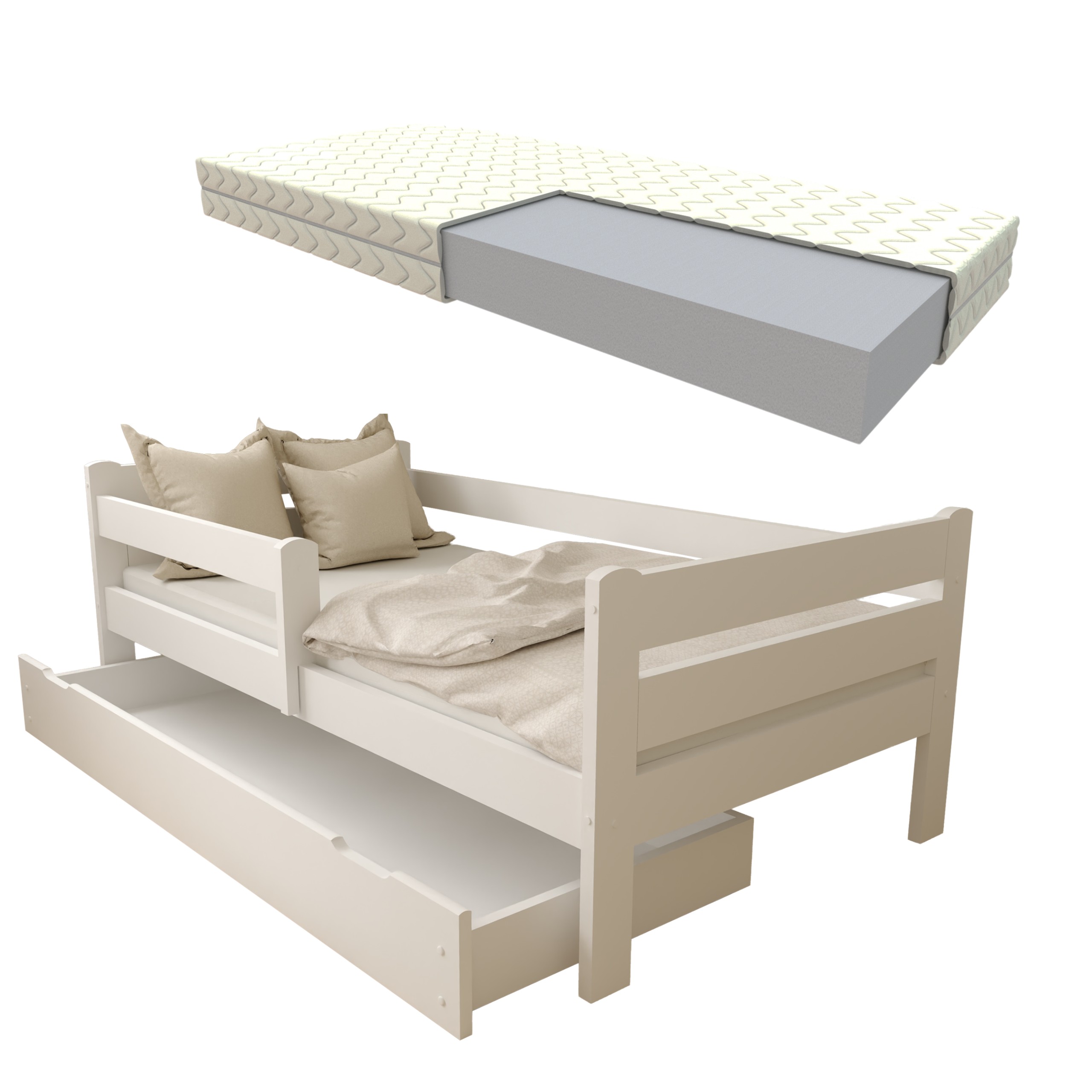 ZESTAW ŁÓŻKO DZIECIĘCE EDI 80×180 Białe z szufladą i materacem piankowym