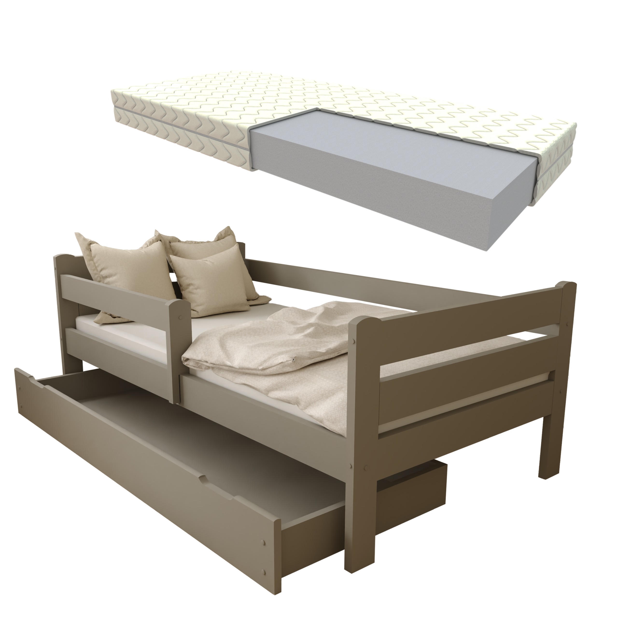 ZESTAW ŁÓŻKO DZIECIĘCE EDI 80×180 Szare z szufladą i materacem piankowym