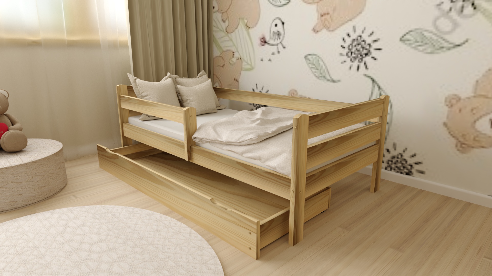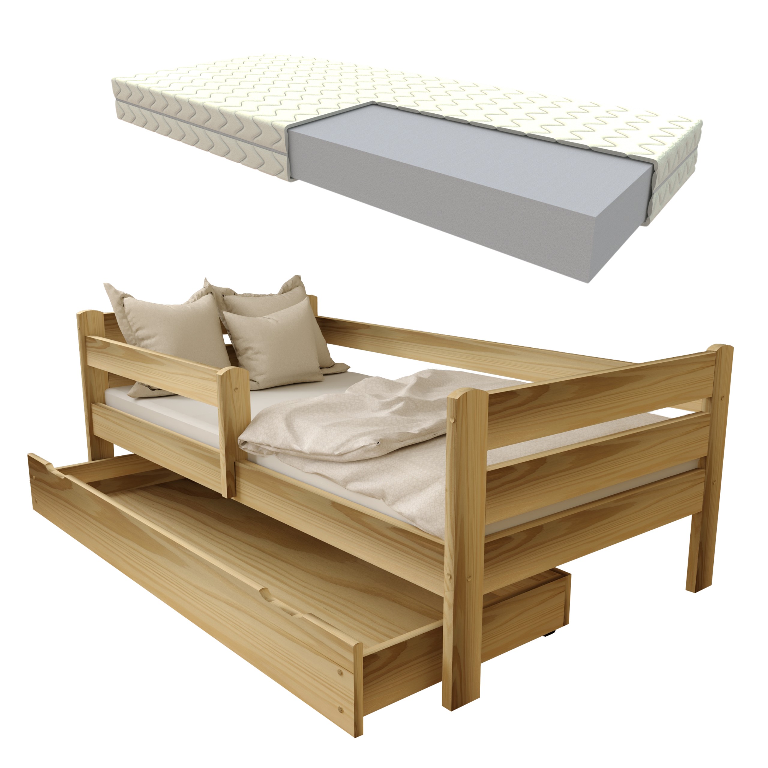 ZESTAW ŁÓŻKO DZIECIĘCE EDI 80×200 Sosna z szufladą i materacem piankowym