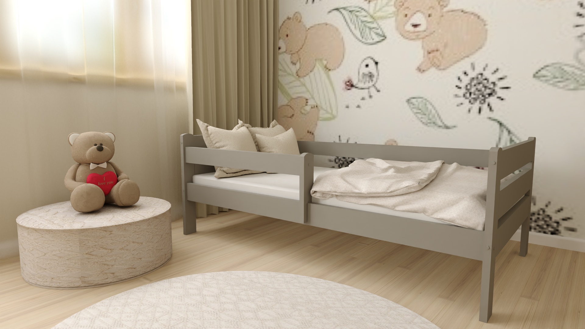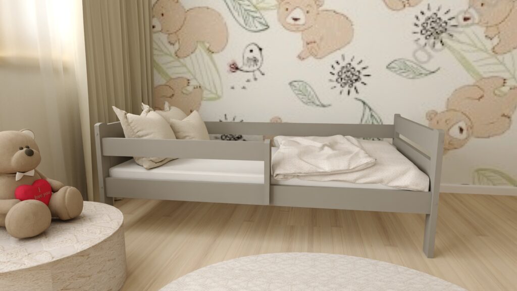 ZESTAW ŁÓŻKO DZIECIĘCE EDI 90×200 Szare + materac piankowy