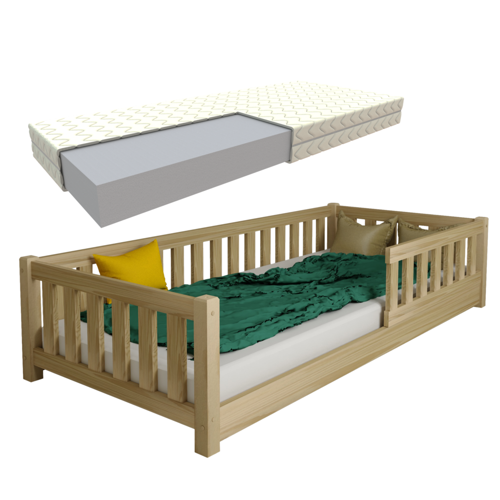 ZESTAW ŁÓŻKO Montessori DZIECIĘCE LULU 80×180 Sosna + materac piankowy