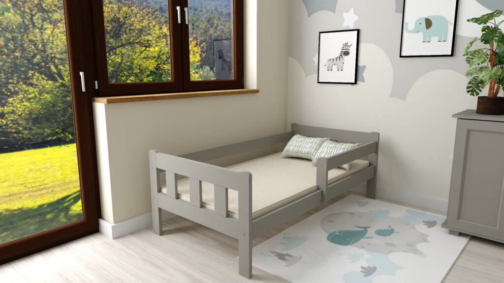 ZESTAW ŁÓŻKO DZIECIĘCE MAJA 80×180 Szare + materac piankowy