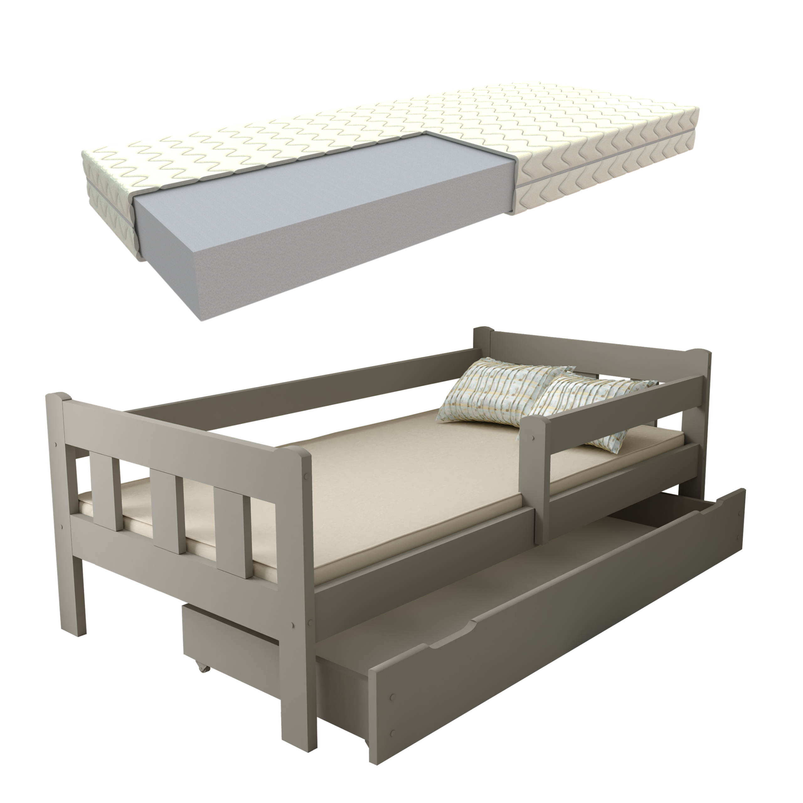 ZESTAW ŁÓŻKO DZIECIĘCE MAJA 90×200 Szare z szufladą i materacem piankowym