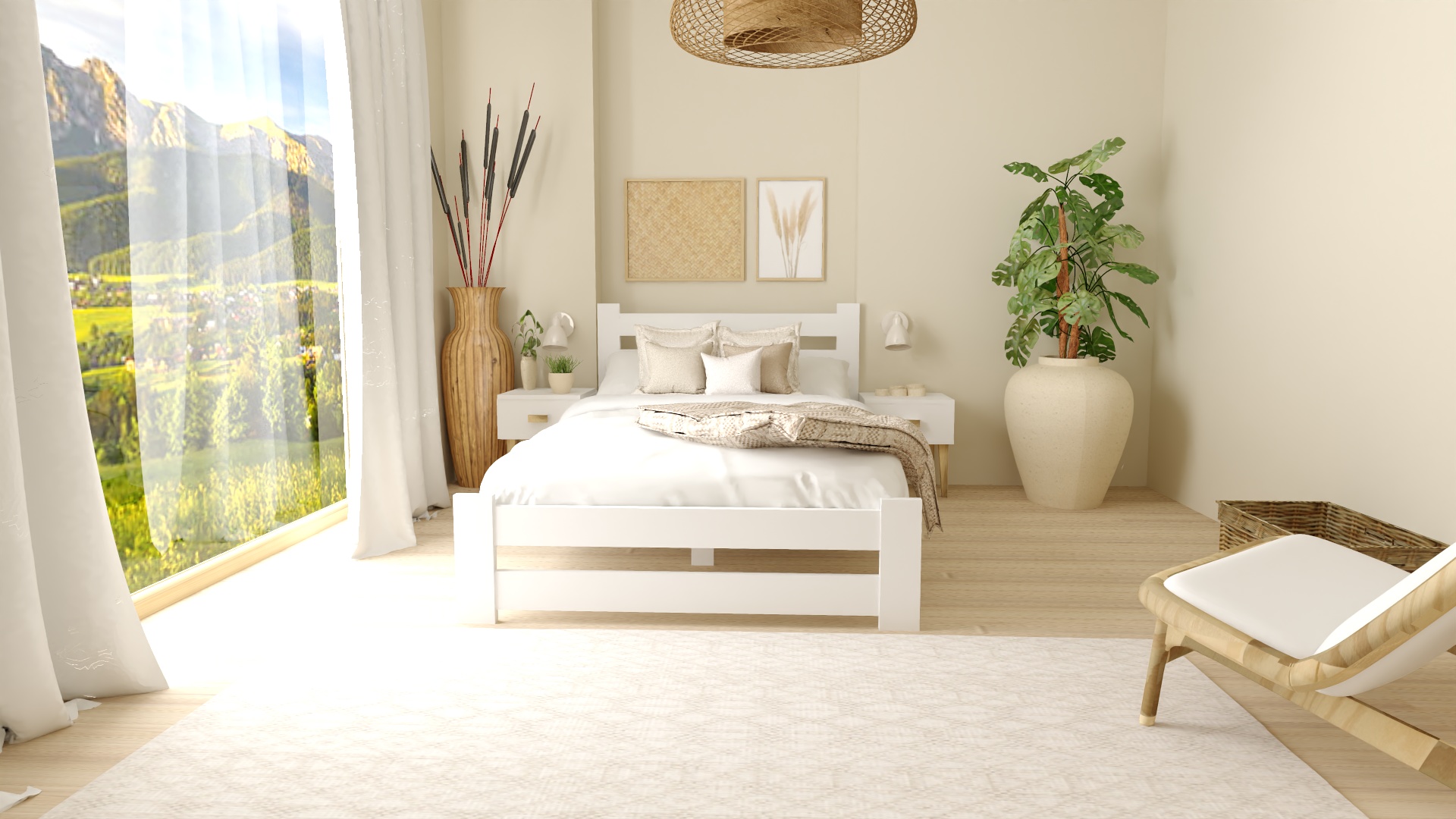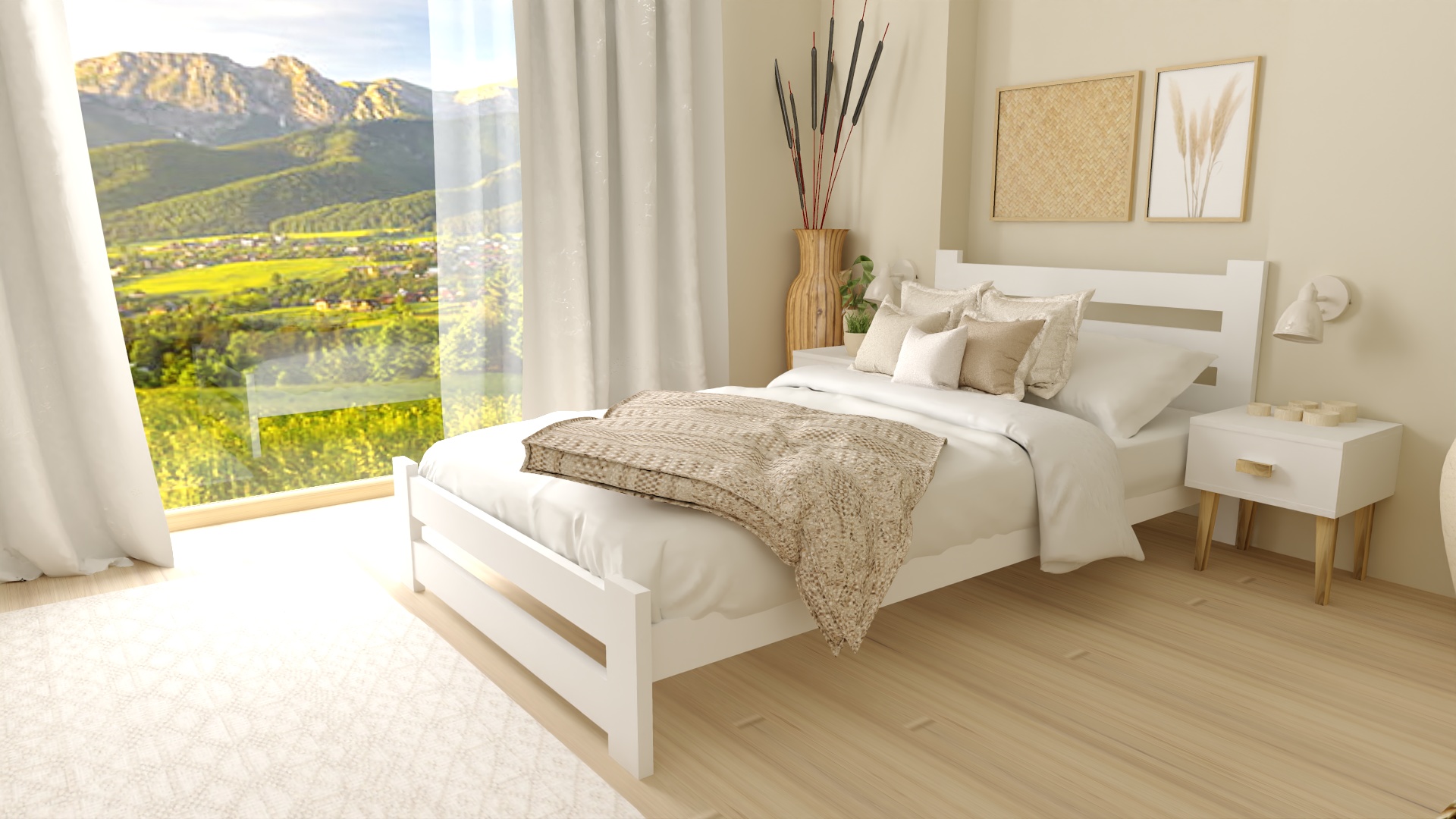 Łóżko EKO to solidne łóżko z litego drewna sosnowego, które dzięki swojej naturalnej estetyce idealnie pasuje do wnętrz w stylu skandynawskim, boho czy rustykalnym.