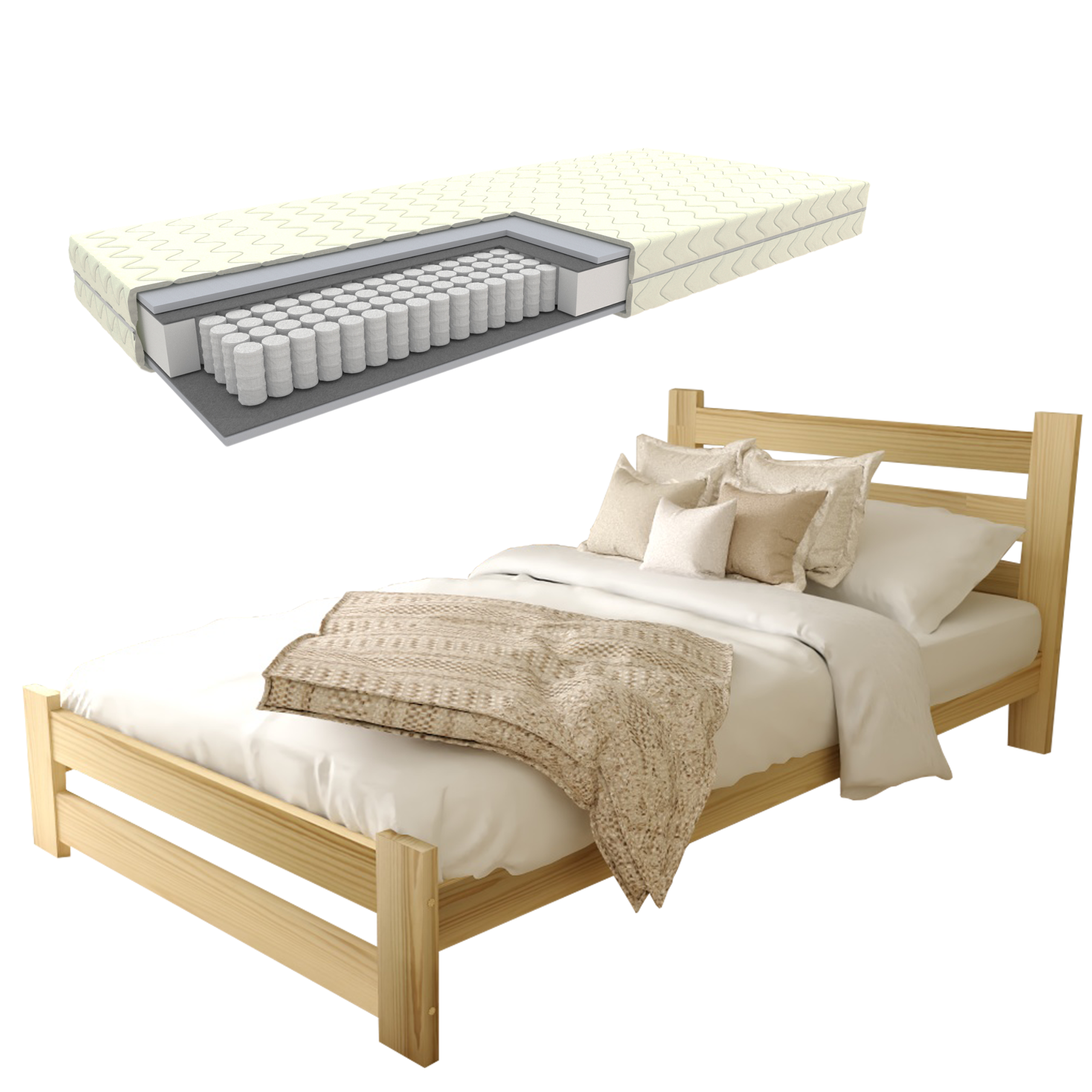 ZESTAW ŁÓŻKO EKO 90×200 Surowe + materac kieszeniowy