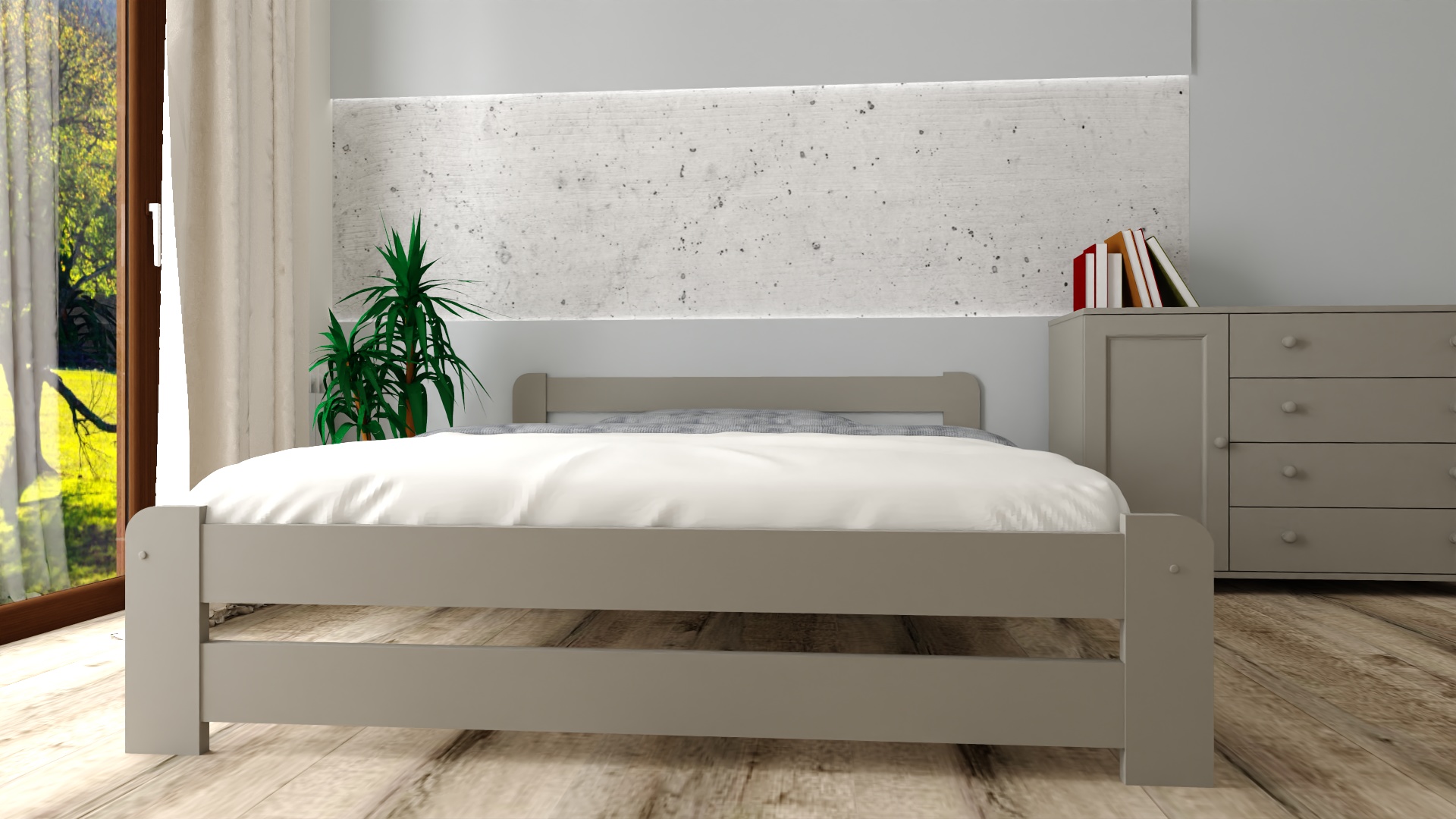 Rama wykonana została z prawdziwego drewna i jest niezwykle odporna na obciążenie oraz uszkodzenia mechaniczne. Przemyślana i solidna konstrukcja łóżka zapewnia stabilność i bezpieczeństwo.