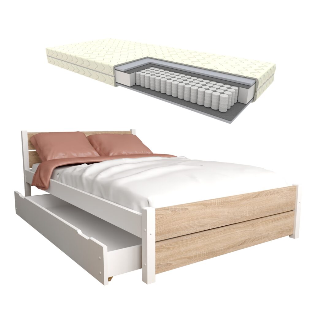 ZESTAW ŁÓŻKO LAURA 160×200 Dąb sonoma z szufladą i materacem kieszeniowym