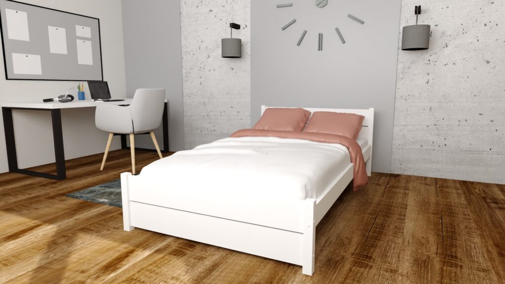 Łóżko posiada duży wybór rozmiarów – sprawdzi się zarówno w sypialni jak i pokoju dla dziecka. Rama wykonana została z prawdziwego drewna i jest niezwykle odporna na obciążenie oraz uszkodzenia mechaniczne. Przemyślana i solidna konstrukcja łóżka zapewnia stabilność i bezpieczeństwo.