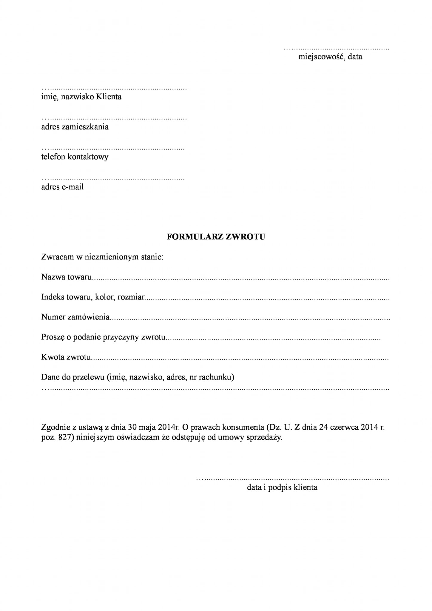 5. Zwrot środków Po otrzymaniu i sprawdzeniu produktu dokonujemy zwrotu na konto podane w formularzu.